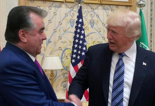 Emomali Rahmon va Donald Tramp. sputnik.tj sayti fotosurati
